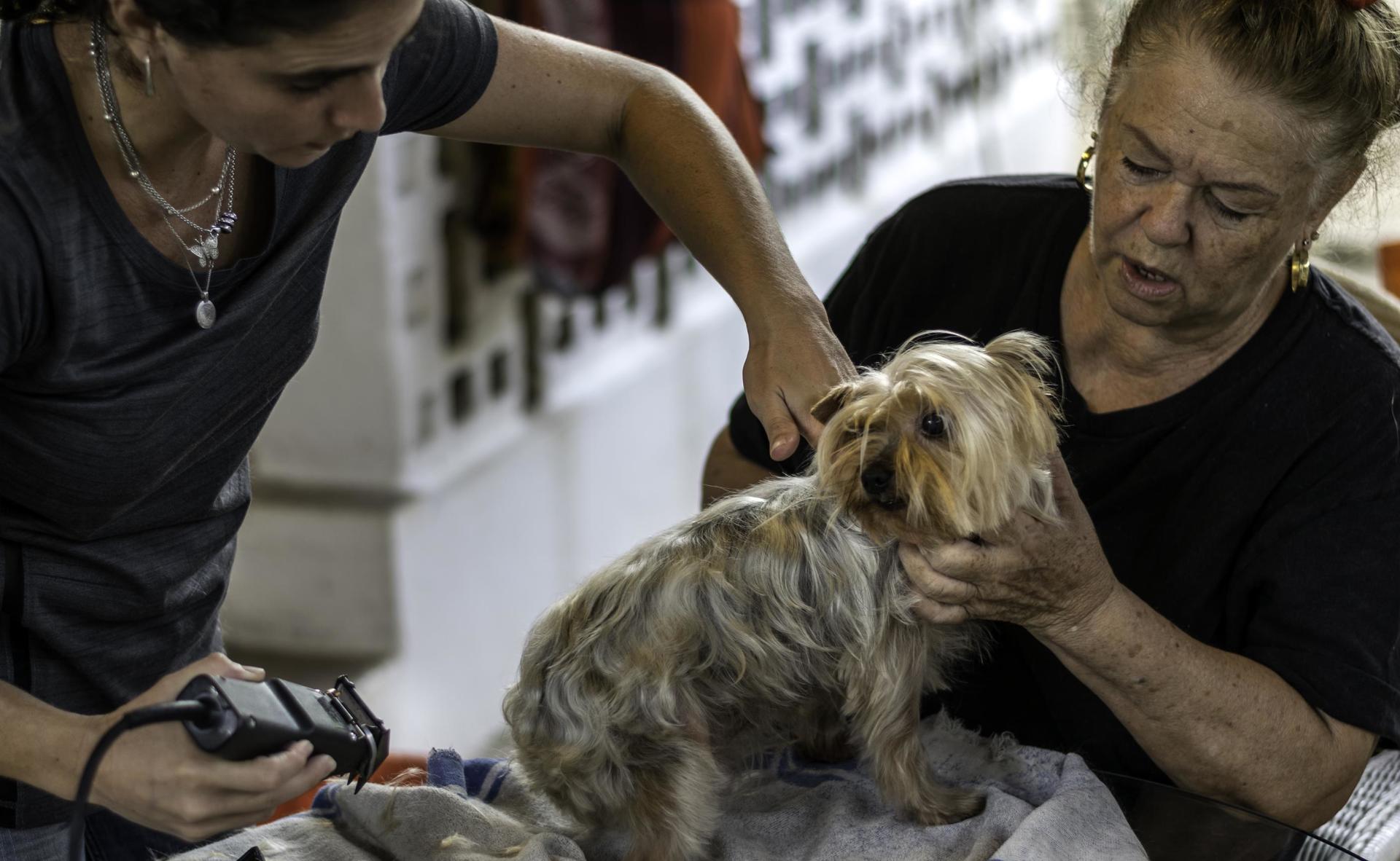 Cada perro es un mundo, con diferentes preferencias, necesidades y miedos. Para algunos, la interacción con sus iguales es especialmente difícil. Para otros lo es la interacción con personas extrañas. Hay perros que permiten la manipulación hasta que se enciende la máquina de pelar y comienzan a reaccionar por miedo al sonido o al contacto, hay otros que temen especialmente al secador o al baño. Hay algunos que temen a todo y no osan reaccionar a ningún estímulo. Muy pocos están relajados durante la peluquería (personalmente nunca he conocido un perro que esté completamente relajado en este contexto). Para ser gentil, es necesario tomar en cuenta las limitaciones y los miedos de cada animal y diseñar estrategias de manejo que le permitan permanecer lo suficientemente relajado como para cooperar. Existen tres grupos de perros con los que la interacción puede resultar especialmente difícil: los perros fóbicos, los cachorros y los perros ancianos. Con ellos debemos prestar especial atención a la forma en que trabajamos. Ofrecer contextos adecuados, pausas y ayudas resulta imprescindible para cada uno de estos grupos. Tanto los perros fóbicos como los cachorros pueden ser especialmente sensibles a los estímulos a los que serán expuestos y, por tanto, serán también especialmente reactivos. Los perros ancianos, aunque quizá no manifiesten problemas de conducta relativos a su edad, sí tendrán necesidades especiales que el estilista deberá tomar en cuenta si desea realizar un manejo gentil. Los perros fóbicos son aquellos que suelen reaccionar al ambiente con miedo. Tanto la frecuencia como la intensidad de comportamientos de estrés y miedo son mayores en este tipo de perros. Es por ello que tienen mayores requerimientos con respecto a otros. Necesitarán mucho apoyo y contextos lo menos estresantes posibles. En caso de animales para los que la peluquería no sea un requerimiento indispensable para la salud, lo mejor para el perro es sugerir al propietario no realizarla en absoluto. En caso de perros que necesitan la peluquería para permanecer físicamente saludables, es ideal que tengan siempre una persona de referencia presente durante la sesión, que se encargue de controlarlos mientras el estilista trabaja. Un perro fóbico necesitará ayudas también fuera de la peluquería. El aprendizaje con clicker, paseos en ambientes saludables o la interacción con personas o perros que le hagan sentir bien pueden contribuir a disminuir la reactividad a los procedimientos a los que se someterá durante la peluquería. Pedir ayuda a un educador competente, que trabaje de manera gentil, puede mejorar la capacidad de cooperación de un perro fóbico.